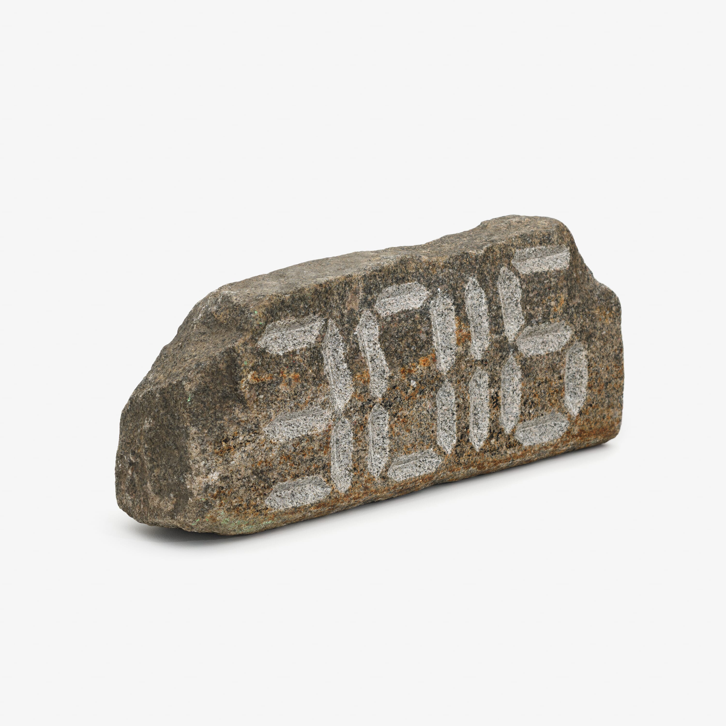0331с: «Armed with a hammer and pointing chisel* in June 2013 I went to the mountains. The first experience in the inscription on the stone surfaces inspired me a lot. Especially I liked the awareness of the point as the original symbol of the birth of everything in our live. Only points form a segment from which is created a line, which in its turn becomes a unified composition, but this all is always accompanied by the creation of a new point. I was also struck by the sparks that fly out even under water when the chisel leaves another track on the stone surface. Action, generating a spark, which in its turn can become fire (if to contribute to this a bit), strongly excited and inspired me, giving me strength and overwhelming desire to sculpt. Having returned home, I shared my findings with my friend Grisha. We began to look for stones like irrepressible, and express our ideas in granite on the streets and in parks, and wherever we found abandoned granite stones. When winter 2013 came, we took to the basement, as there was a workshop, some granite stones which we found on the streets and which we could drag from a place. Having created the first objects based on our street paintings, we were greatly inspired. Since then, Grisha and I continued our search and improved our skills in working with granite».