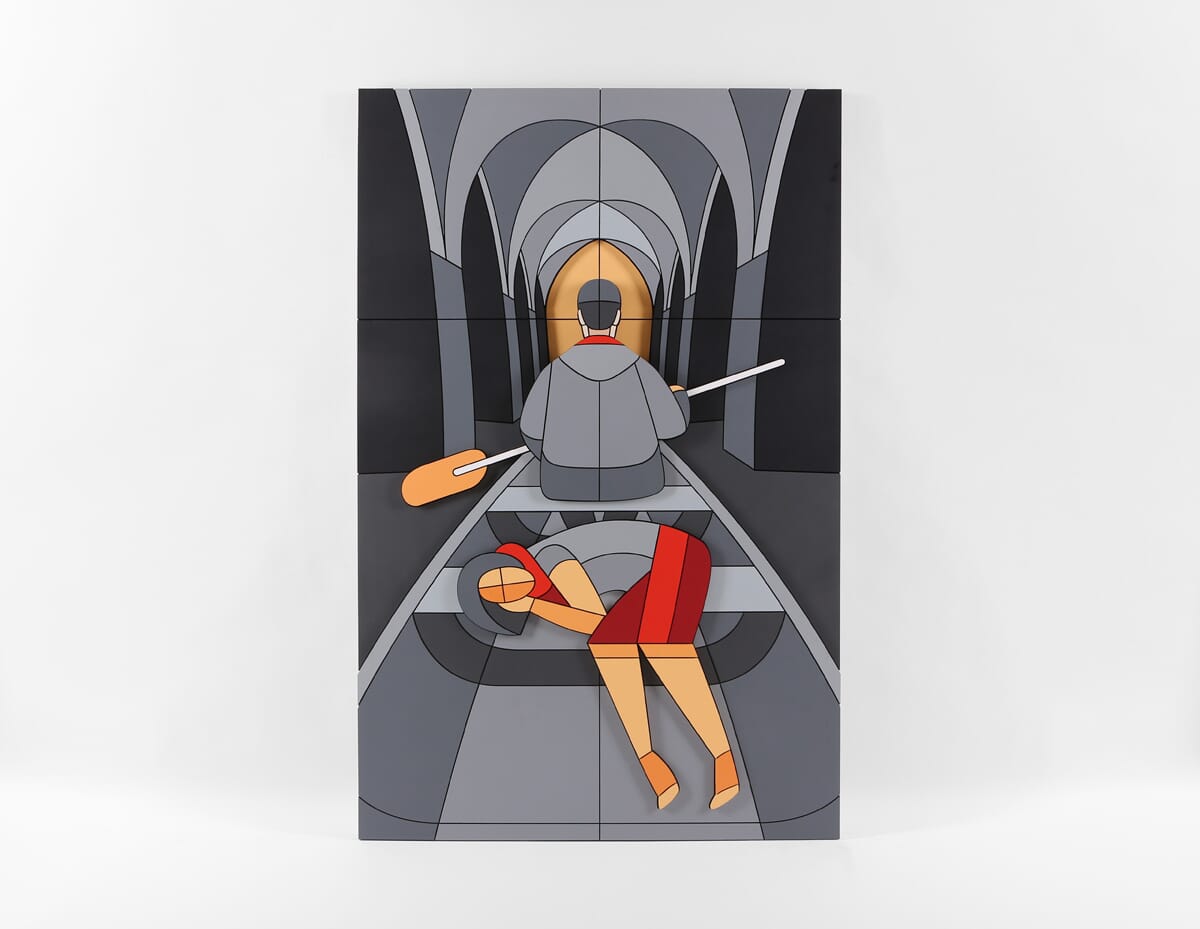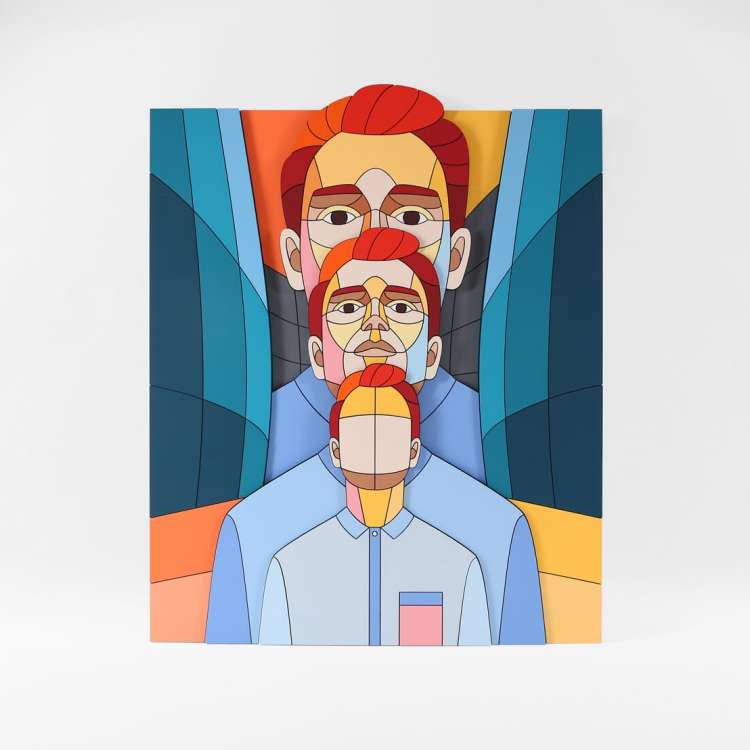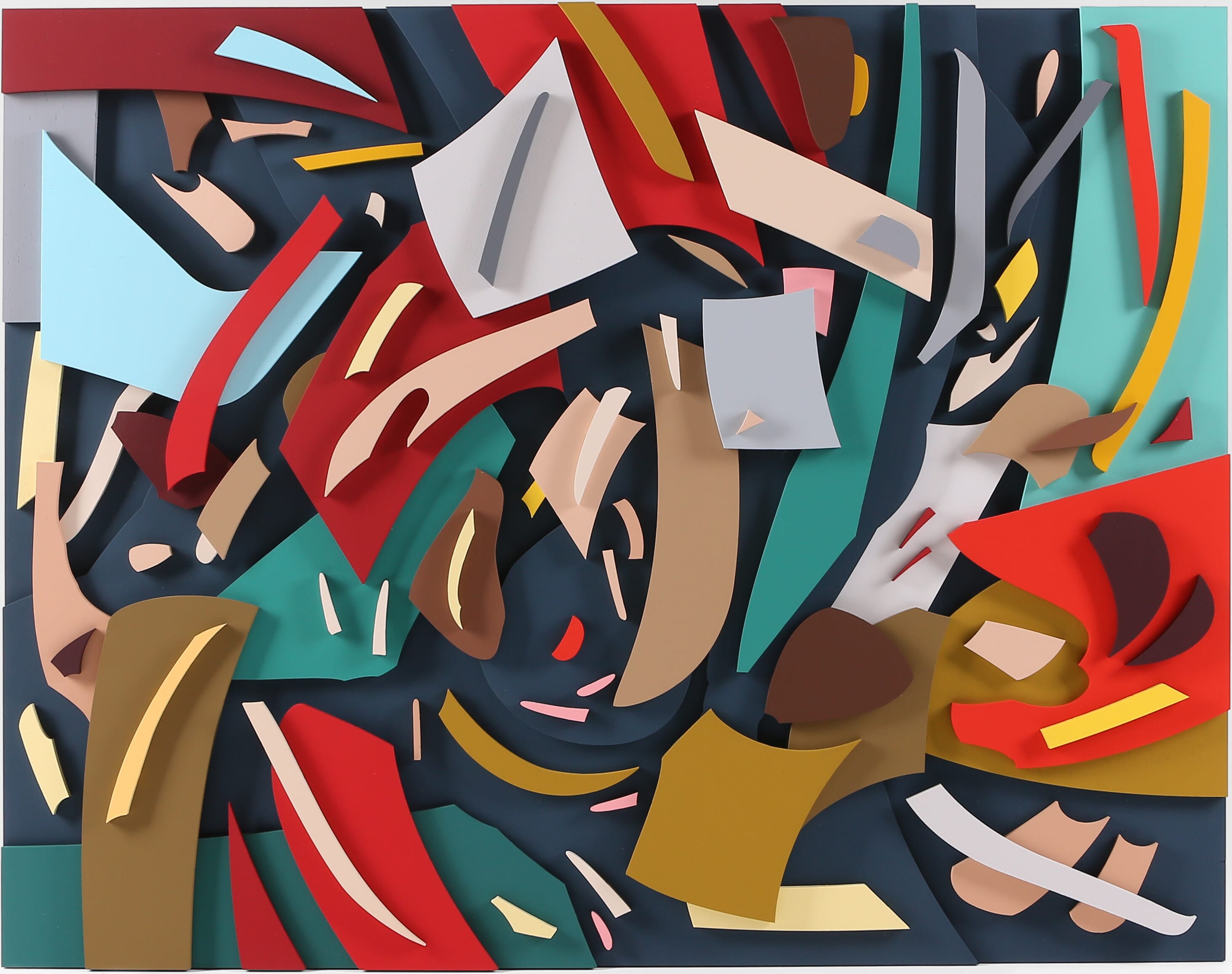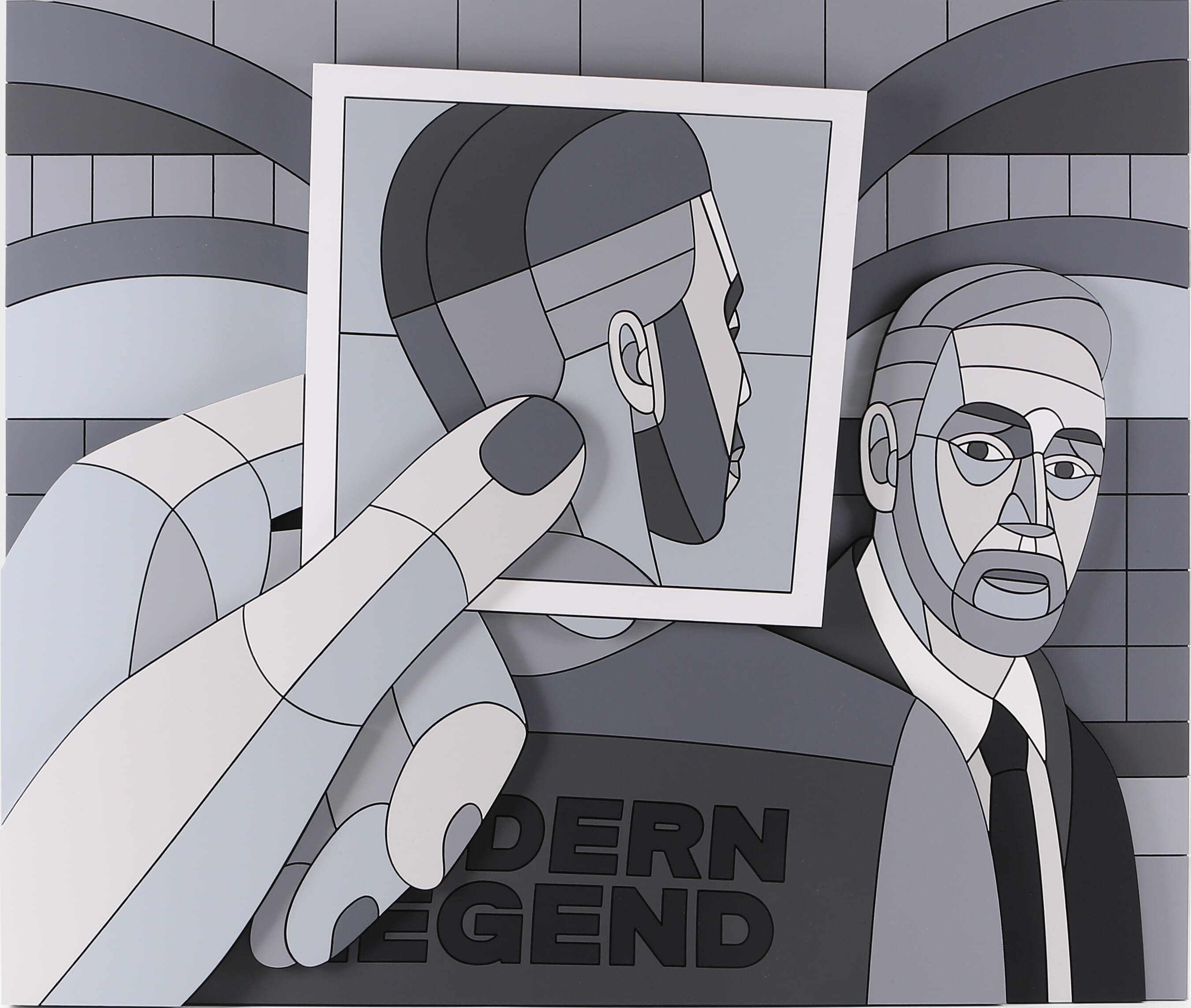 Часть произведений на выставке представляет из себя диптихи, собранные из одинаковых наборов фанерных деталей, где одна часть – фигуративное изображение, а другая — абстрактное. Превращая изображения в беспредметные композиции, Дмитрий Аске демонстрирует разбитую на множество частей картину мира современного человека, которую при желании он может собрать воедино, однако и этот образ может оказаться незавершенным.