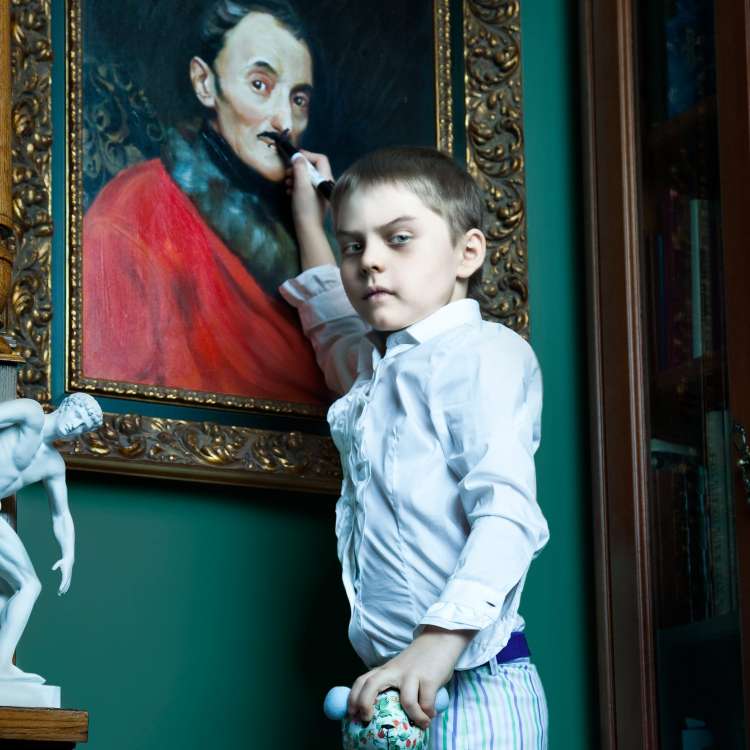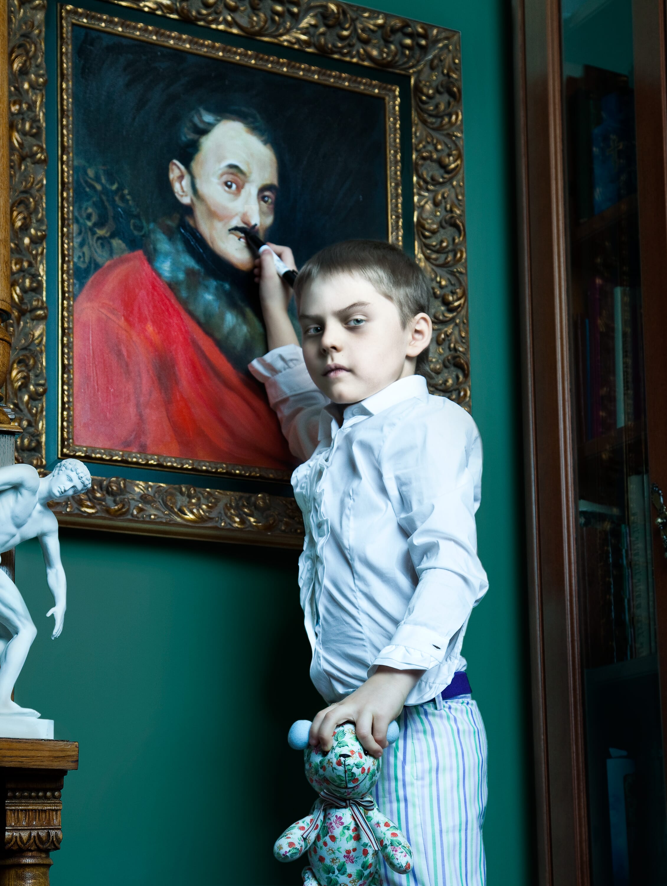 На этот раз он выбрал в качестве персонажей своего театра живых картин не взрослых, а детей, но не тех невнятных существ, которые еще не определились в своих амплуа, а «маленьких взрослых», родители которых находятся на верхней ступени социальной иерархии. Они с младенчества ощущают себя элитой, они растут в мире роскоши и больших денег. Сегодня эти детишки отражают в себе, как в зеркале, своих успешных родителей, а через полтора десятка лет они вырастут, получат элитное образование в престижных Европейских университетах и сами окажутся наверху иерархической лестницы.